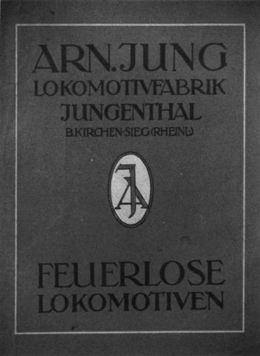 Einen kleinen, jedoch nicht unwesentlichen Anteil daran hatten auch die feuerlosen (Dampf-) Lokomotiven, die sich wegen ihrer äußerst einfachen Bauart und Wirkungsweise besonderer Beliebtheit und Verbreitung erfreuten. Feuerlose Lokomotiven, allerdings mit einer anderen Technologie, nämlich Druckluft-Grubenlokomotiven wurden noch bis in das Jahr 1987 gebaut,und in den Tagen der Betriebsschließung stand noch eine generalüberholte Druckluftlok auf dem Firmengelände. Zur feuerlosen Lokomotive erschien eigens im Jahr 1911, dem Todesjahr des Firmengründers Arnold Jung, der Katalog Nr.6, ein Spezialkatalog für "Feuerlose Lokomotiven". Dieser trägt noch die alte Unternehmensbezeichnung und das bis dato verwendete Firmenlogo, die Initialien "AJ" auf einem hellen Spiegel.