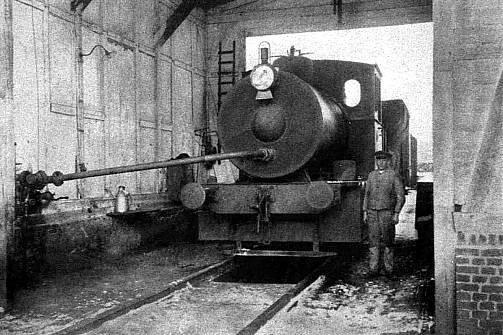 EinsatzgebieteDie feuerlosen Lokomotiven wurden hauptsächlich zu Rangierzwecken auf Hüttenwerken und größeren Fabrikanlagen verwendet, aber auch in allen Betrieben, in denen wegen der Feuergefahr gewöhnliche Lokomotiven mit Kohlen- oder Holzfeuerung nicht in Betracht kamen wie z. B. in Papier-, Pulver- und chemischen Fabriken, auf größeren Holzlagerplätzen, in Gasanstalten u. a. m. Hinzu kamen die im Verhältnis zu Dampf- oder elektrischen Lokomotiven niedrigeren Anschaffungs- und Unterhaltungskosten, insbesondere wenn, wie zu der Zeit in großen Betrieben üblich, bereits ein Kesselhaus mit einer Dampferzeugung vorhanden war. Da die feuerlosen Lokomotiven keinerlei Rauch entwickeln, wurden sie auch für geschlossene Räume/Werkstätten, Tunnels und Gruben unter Tage eingesetzt. Voraussetzung für die Verwendung feuerloser Lokomotiven war das Vorhandensein einer stationären Kesselanlage, die den zum Betrieb der Lokomotive benötigten Dampf lieferte.