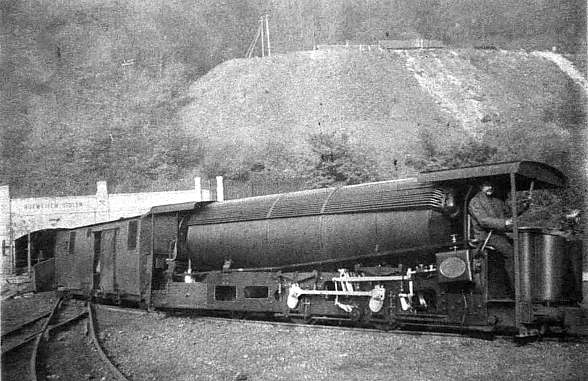 Konstruktion und Wirkungsweise der feuerlosen LokomotivenWorin lagen nun die wesentlichen technischen Unterschiede zur normalen Lok mit Kohlen- oder Holzfeuerung und der feuerlosen Dampfloks? Als Kessel der Lokomotive diente ein einfacher Walzenkessel ohne Siederohre und Speisevorrichtungen. Eine Einstiegsöffnung mit Mannlochdeckel, am zweckmäßigsten an der vorderen Stirnwand angebracht, gestattete ein Befahren des Kessels. Um möglichst trockenen Dampf zu den Zylindern zu leiten, war auf dem Kessel ein Dom aufgesetzt, von dem die Dampfentnahme erfolgt. An der vorderen Stirnwand war ein Absperrventil angebracht, durch das der Dampf von dem stationären Dampfkessel der Lokomotive zugeführt wurde. Der Unterbau und das Triebwerk unterschieden sich nicht von demjenigen gefeuerter Dampflokomotiven. Die Dampfzylinder wurden jedoch verhältnismäßig groß bemessen, um die gegen Ende der Betriebsperiode niedrige Dampfspannung noch möglichst ausnutzen zu können. Um die Wärmeverluste möglichst niedrig zu halten, wurden die Kessel und Zylinder mit präpariertem Kesselfilz oder Pyroisolit-Glimmerplatten gut isoliert.