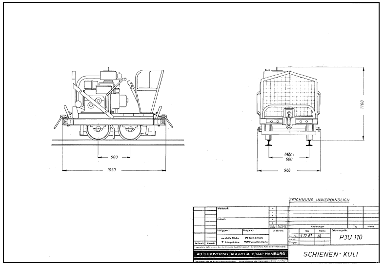 Die Schienen-Kuli der Baujahre ab etwa 1948 unterscheiden sich von den Vorgängern durch einen eckigen Getriebekasten und die Ausführung des Rahmengestells.
